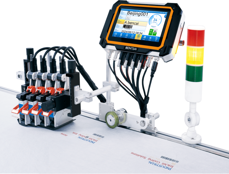 La impresora de inyección de tinta industrial Bentsai E64P ofrece flexibilidad gracias a sus 4 cabezales de impresión, lo que permite trabajar en modo conjunto o por separado. Alcanza una altura máxima de impresión de 100 mm (4 pulgadas), ideal para la codificación de cajas exteriores o para la libre combinación y separación según las necesidades de la línea de producción. Esta impresora utiliza tecnología de inyección de tinta térmica confiable y logra una impresión de alta resolución de hasta 600 ppp.